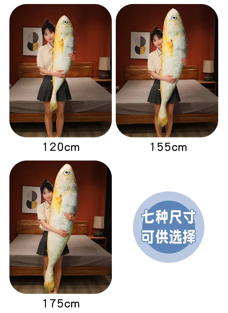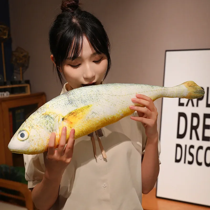 Giant Simulation Funny Fish Plush Toys Stuffed Soft Animal Yellow Croaker Pillow Creative Sleep Cushion for Kids Girls Xmas Gift